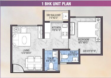 595 Sq.ft. | 1 BHK | 2 Bath(s)