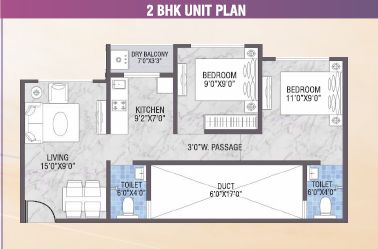 860 Sq.ft. | 2 BHK | 2 Bath(s)